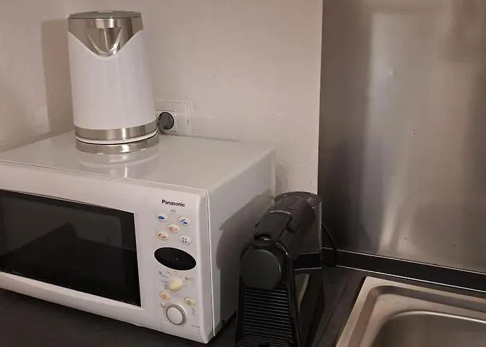Een kitchenette is uitgerust met een magnetron, een koelkast en glaswerk, evenals koffie- en theevoorzieningen.